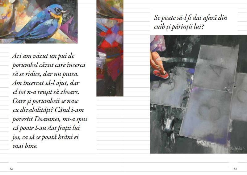 Andrei Damian a fost cel care a intrat în spiritul acestor povești și le-a făcut să se iubească una cu alta. A căutat să imprime dinamism, iar acest lucru nu poate fi făcut decât prin extragerea unor detalii cu care s-a jucat absolut fantastic, făcând ca pictura și cuvântul să se întâlnească și să se recunoască între ele prin grafică. Detalii și repetiții, ducând uneori la senzația de imponderabilitate. Personal am fost extrem de impresionat de formula pe care a găsit-o. Făcându-mă să înțeleg - o dată în plus - că o carte are în spatele ei nu un autor, ci o echipă.